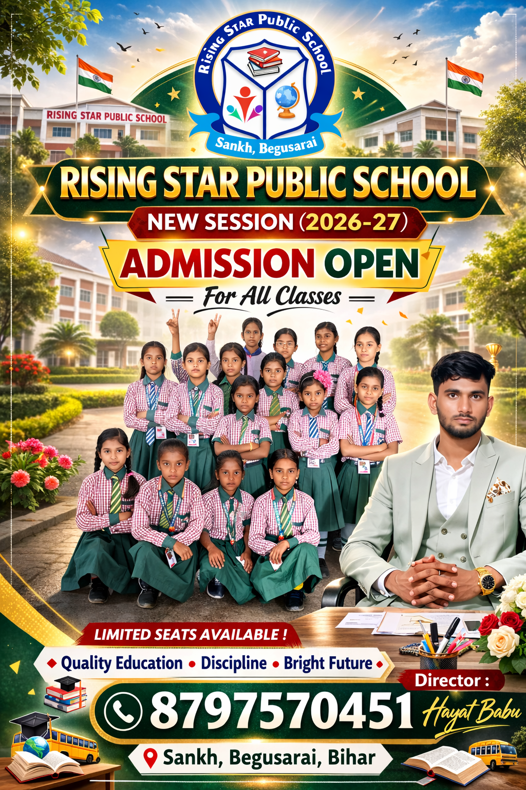राइजिंग स्टार पब्लिक स्कूल, सांख नवटोलीया, बेगूसराय एक उभरता हुआ शैक्षणिक संस्थान है, जो शिक्षा में उत्कृष्टता के लिए समर्पित है। विद्यालय में प्रि-नर्सरी से आठवीं कक्षा तक की शिक्षा उपलब्ध है, जिससे बच्चों की मजबूत नींव रखी जाती है। हमारा उद्देश्य गुणवत्तापूर्ण शिक्षा देना है, जिसमें अनुशासन, नैतिक मूल्य और आधुनिक शिक्षण पद्धतियों का समावेश हो। हम बच्चों के बौद्धिक, शारीरिक, सांस्कृतिक और सामाजिक विकास पर विशेष ध्यान देते हैं। विद्यालय छात्र-केंद्रित दृष्टिकोण अपनाता है, जिससे पढ़ाई आनंदमय और सार्थक बनती है। अनुभवी और योग्य शिक्षक बच्चों का मार्गदर्शन धैर्य और समर्पण के साथ करते हैं। यहाँ केवल पढ़ाई ही नहीं, बल्कि खेलकूद, कला और सांस्क...
